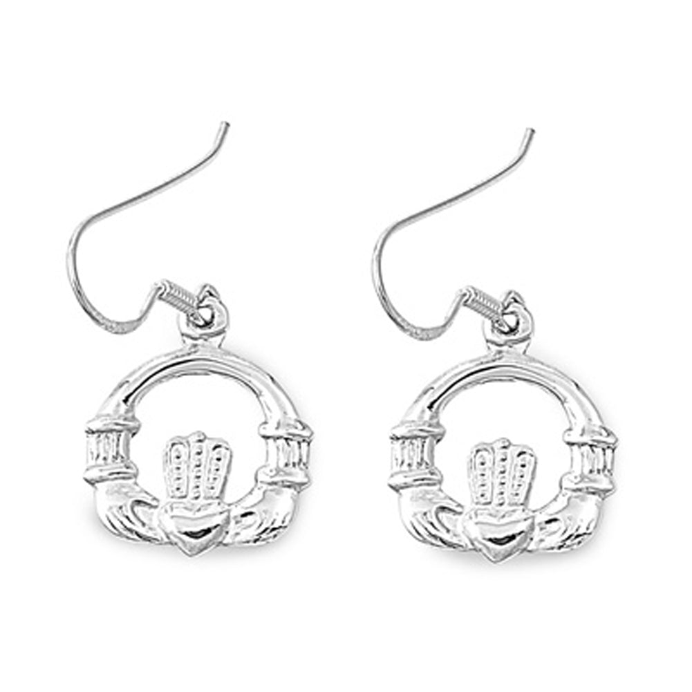 High Polish Celtic Claddagh Circle .925 Sterling Silver Eternity Promise Heart Earrings