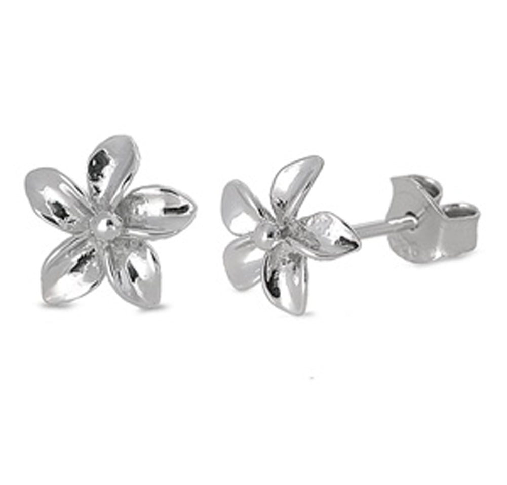 Wispy Plumeria Flower High Polish .925 Sterling Silver Nature Garden Stud Earrings