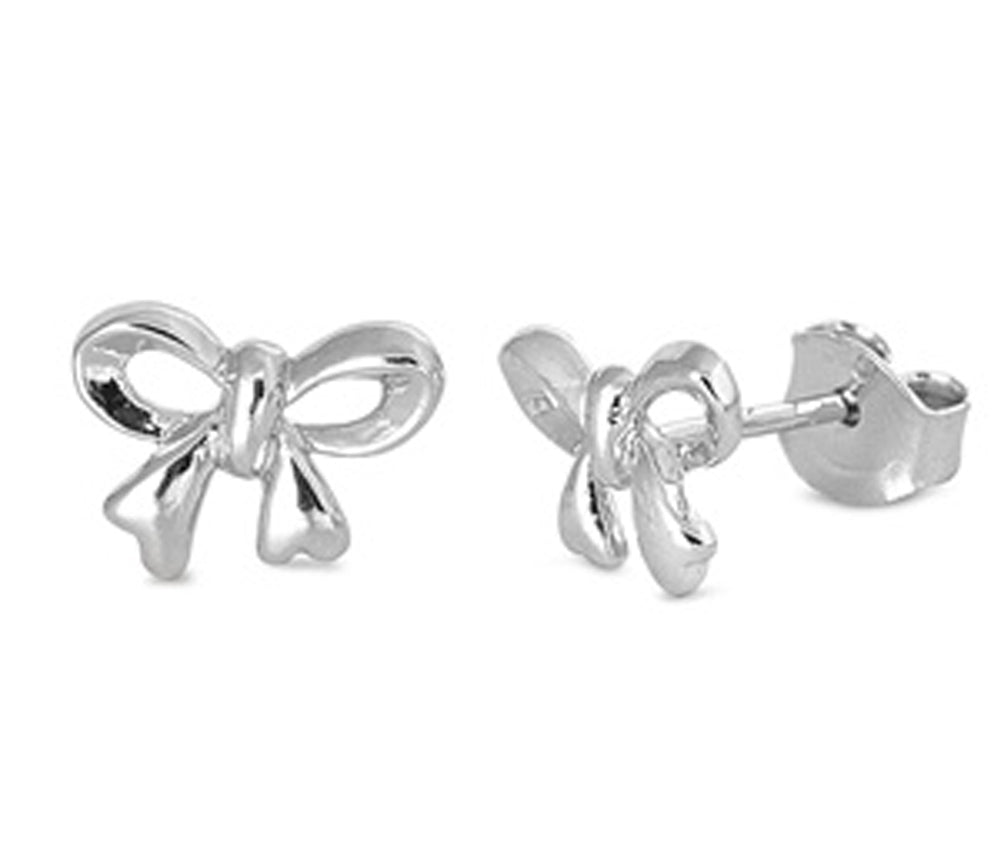 Ribbon Small Bow Knot .925 Sterling Silver Loop Twist Stud Earrings