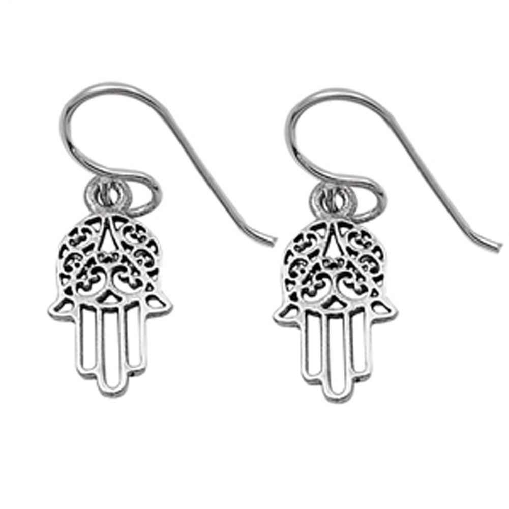 Hand Ornate Filigree Swirl Hamsa Symbol .925 Sterling Silver Palm Finger Stud Earrings