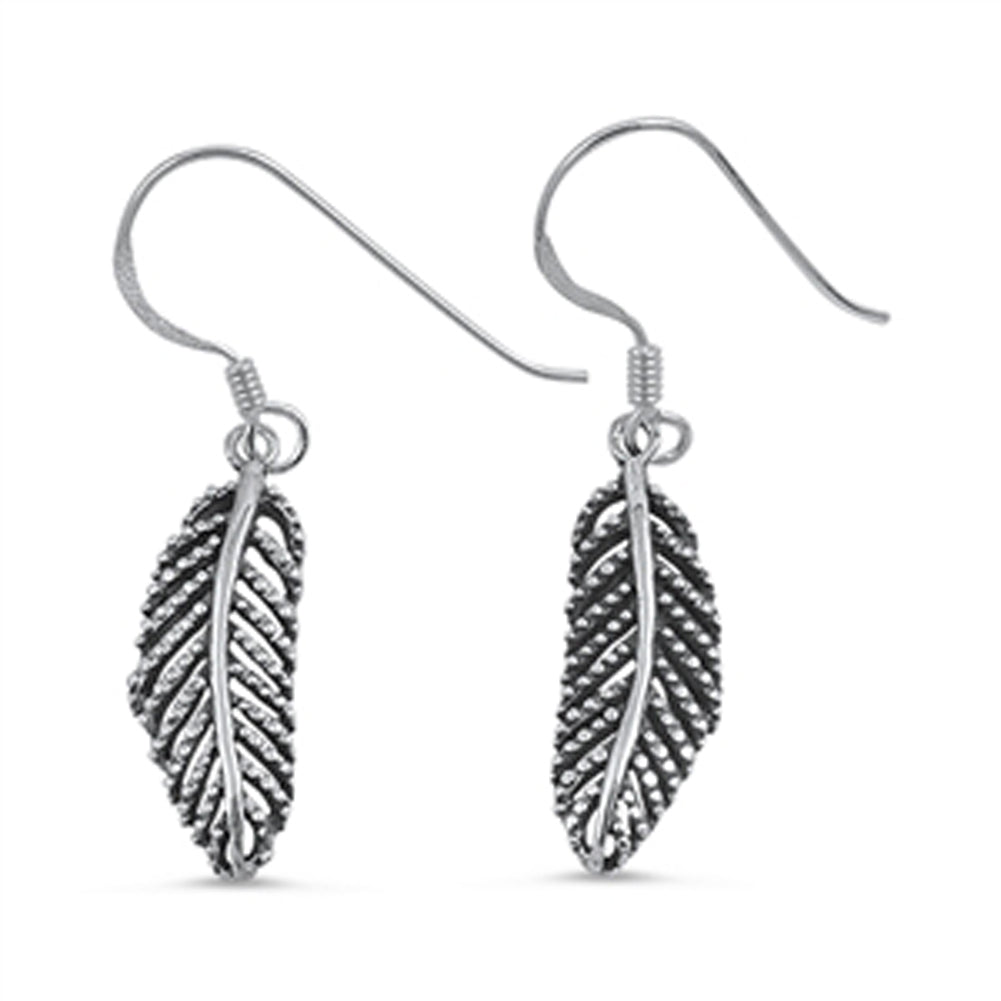 Bumpy Detailed Feather Bohemian .925 Sterling Silver Gypsy Animal Festival Earrings