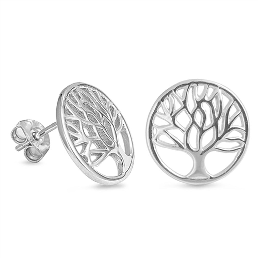 Cutout Branch Circle Tree of Life Nature .925 Sterling Silver Leaf Open Earrings