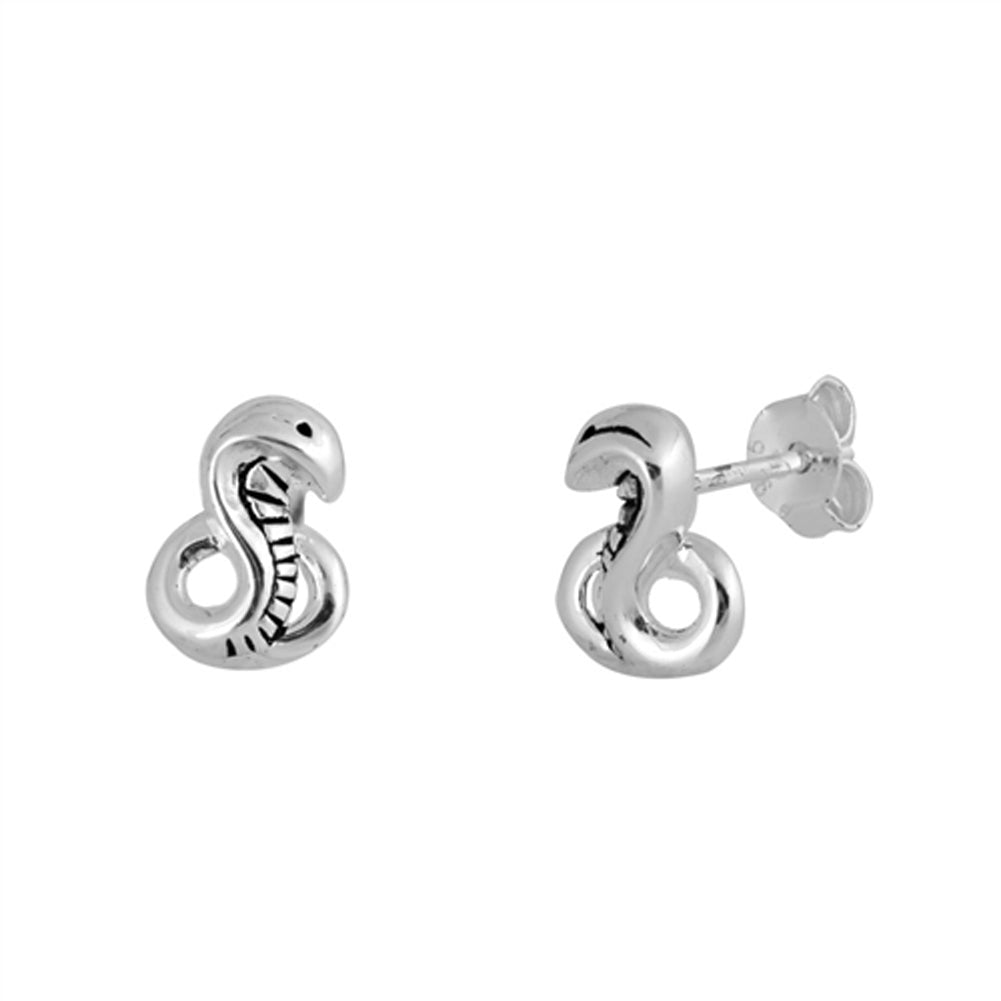 Oxidized Cobra Coiled Snake High Polish .925 Sterling Silver Animal Stud Earrings