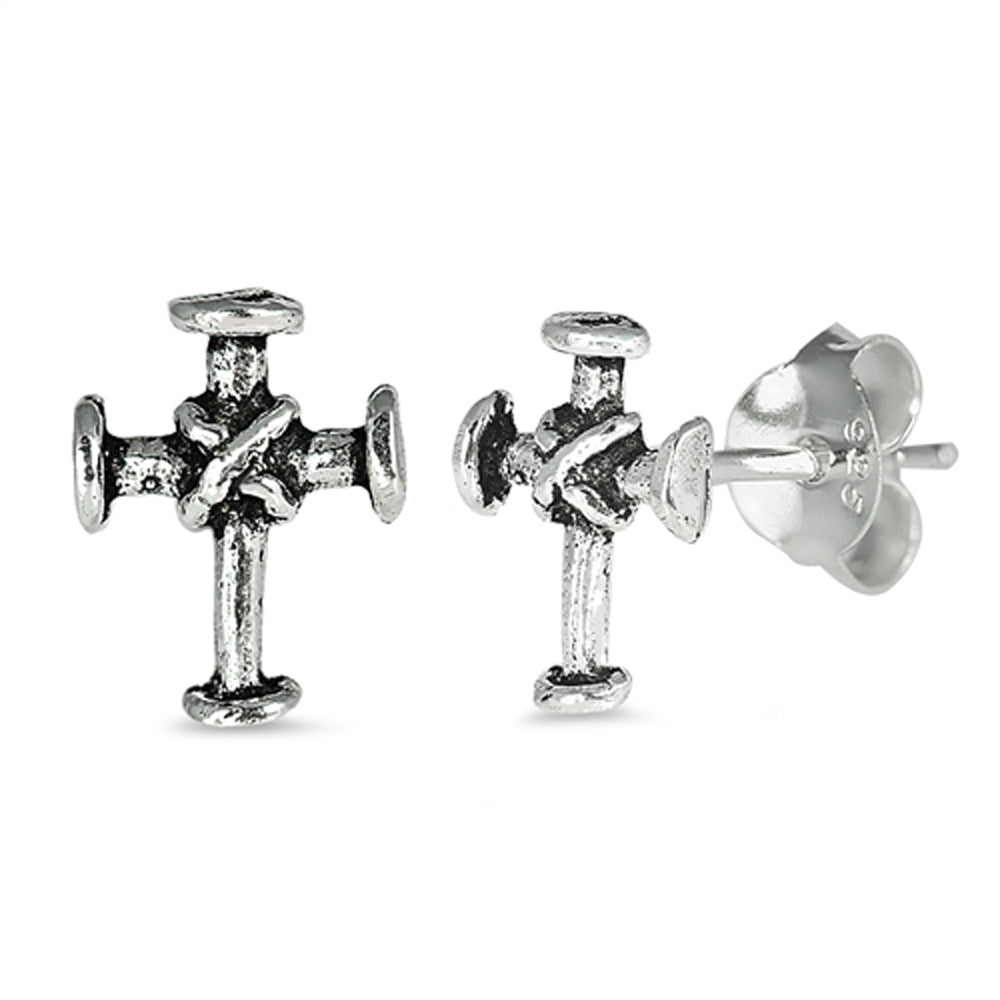 Sterling Silver Classic Rope X Pattern Knot Criss-Cross Christian Earrings 925