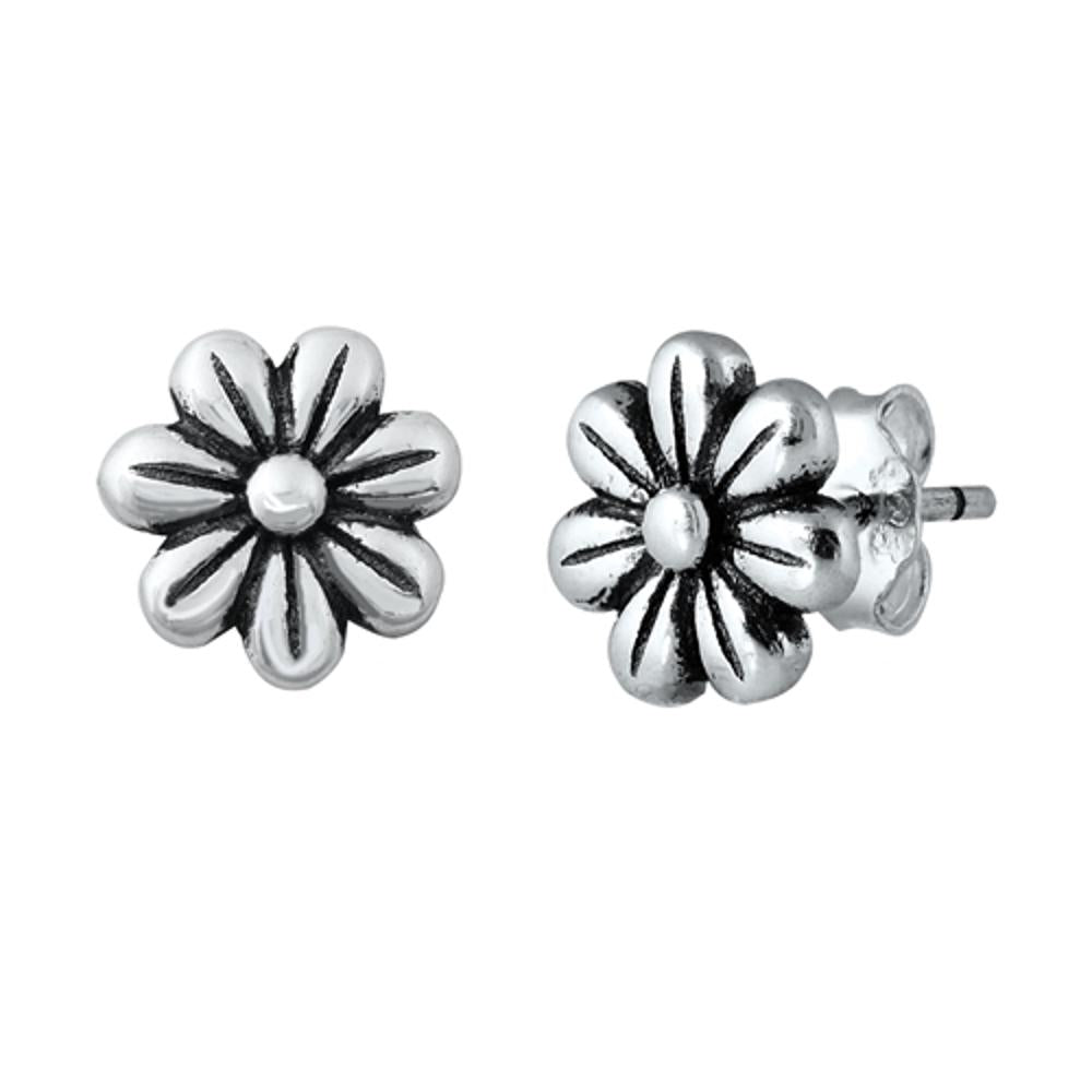 Cute Oxidized Sterling Silver Daisy Flower Stud Earrings Push Back 925 New
