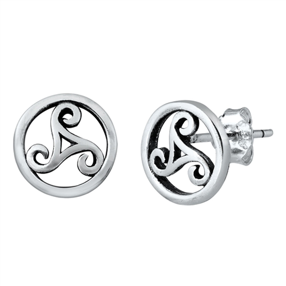 Sterling Silver Celtic Triquetra Filigree Swirl Trinity Round Open Earrings 925