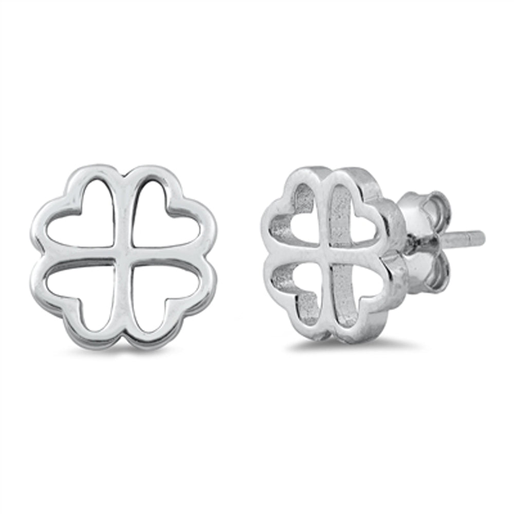 Sterling Silver Four Leaf Clover Shamrock Good Luck Open Promise Heart Earrings
