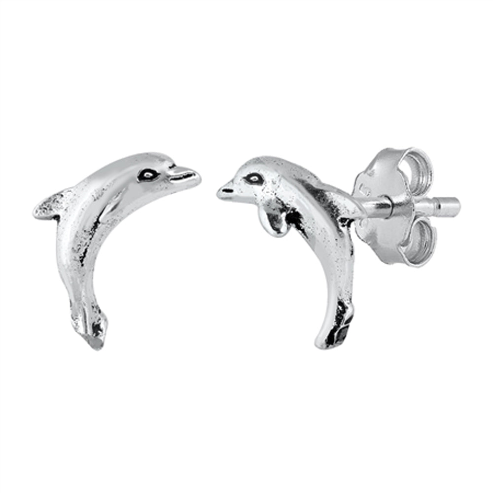 Sterling Silver Tropical Dolphin Animal Cute Ocean Beach Earrings Oxidized 925