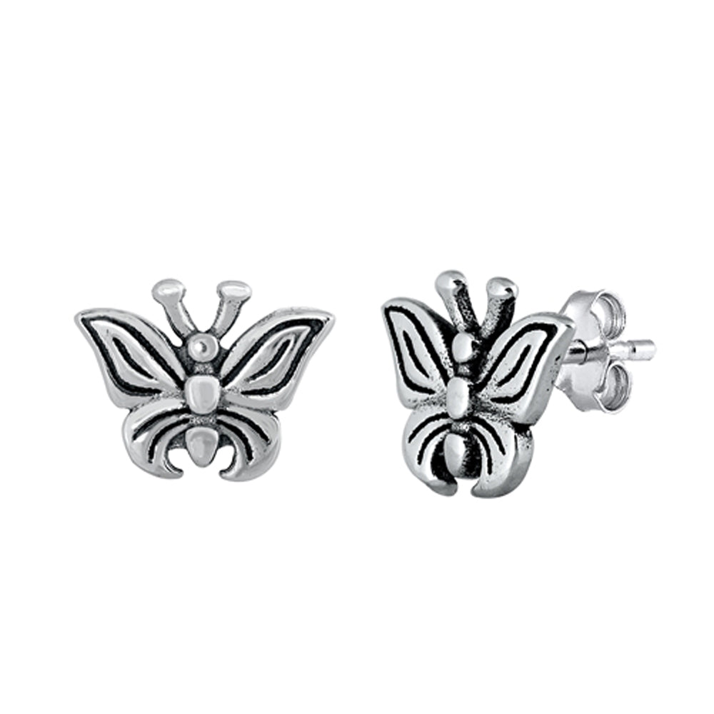 Sterling Silver Bug Cute Butterfly Oxidized Wing Animal Garden Insect Earrings
