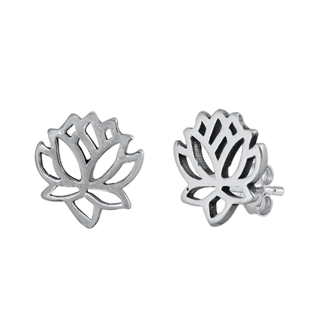 Sterling Silver Flat Cutout Lotus Flower Elegant Bloom Nature Earrings 925 New
