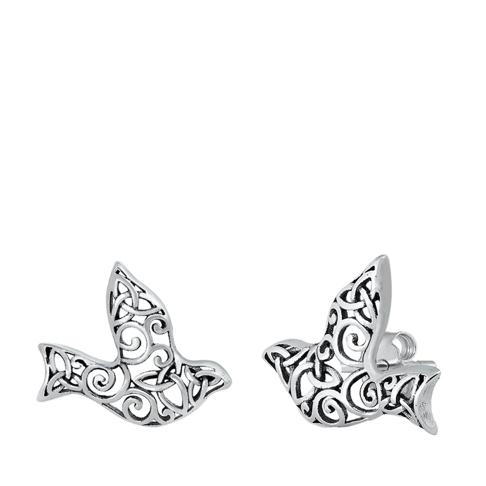 Sterling Silver Ornate Dove Bird Animal Filigree Swirl Open Earrings 925 New