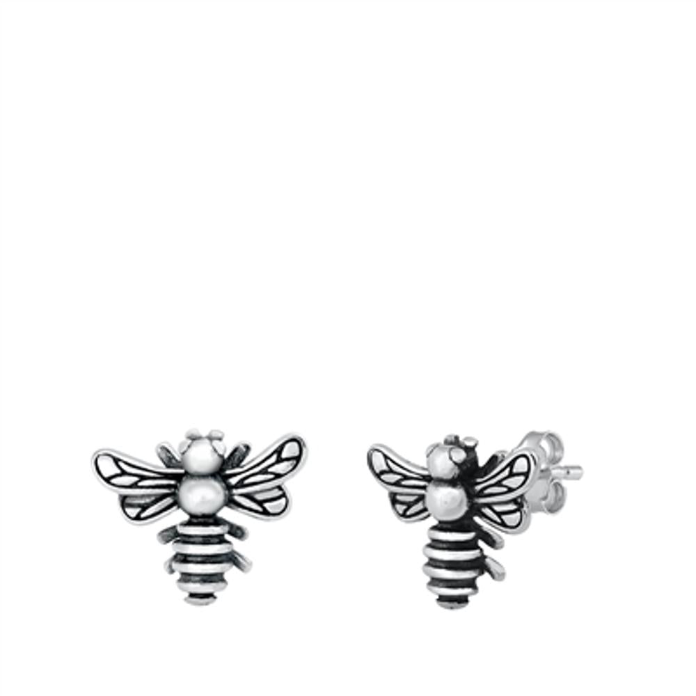 Trendy Sterling Silver Bee Stud Earrings Oxidized Animal Bumble Bee Post 925 New
