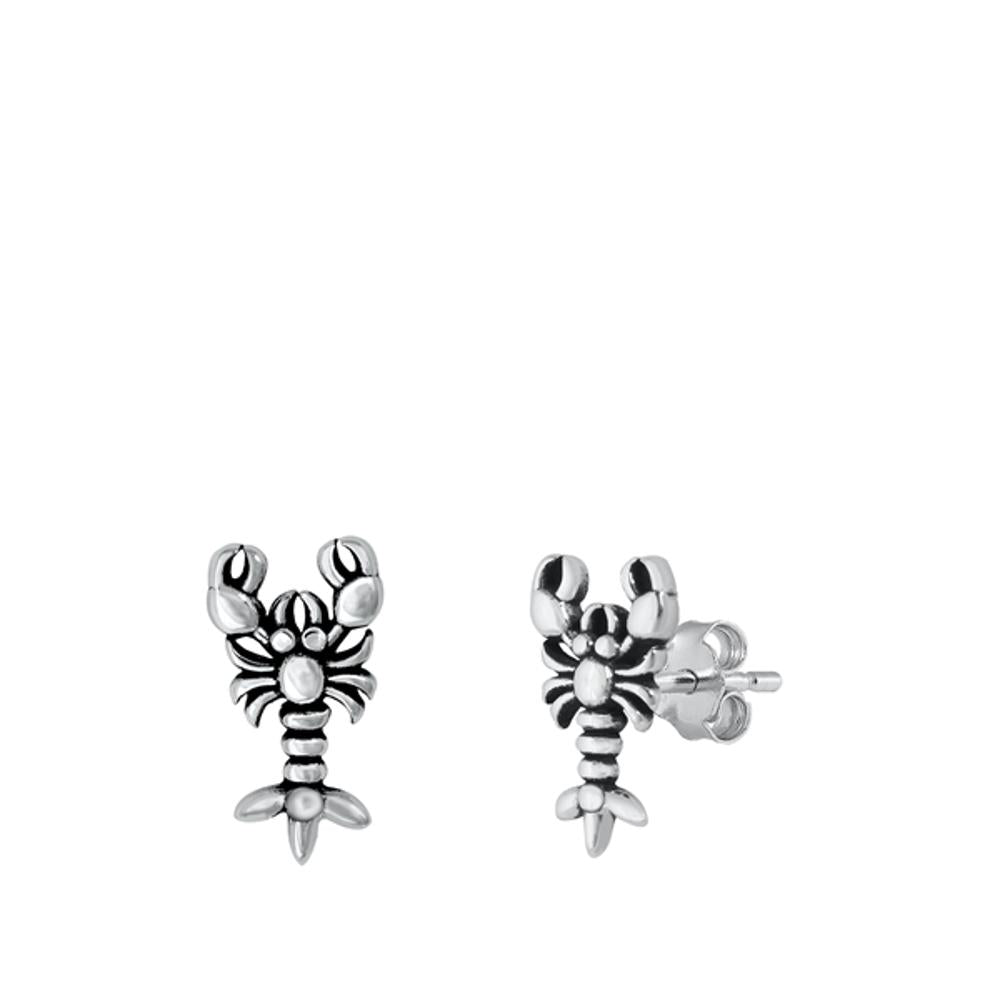 Sterling Silver Sea Lobster Stud Fashion Earrings Oxidized 925 New