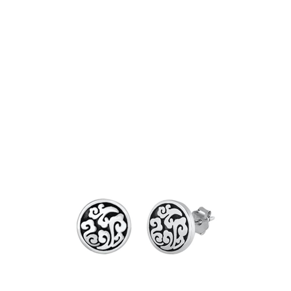 Sterling Silver Cute Classic Oxidized Cloud Medallion Fashion Earrings