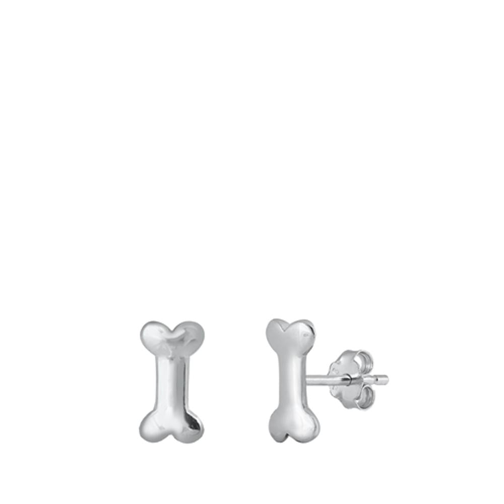 Sterling Silver Dog Bone Stud Earrings Push Back Canine And Bones Post 925 New