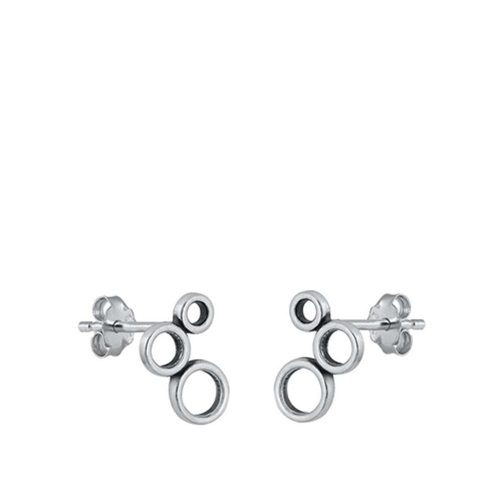 Sterling Silver High Polished Stacked Circle Oxidized Earrings 925 New