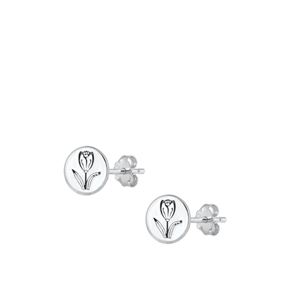 Sterling Silver High Polished Simple Tulip Flower Fashion Earrings 925 New