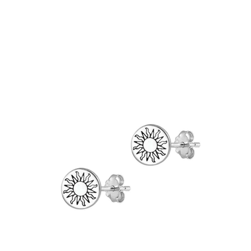 Sterling Silver Fashion Cute Oxidized High Polished Sun Earrings .925 New
