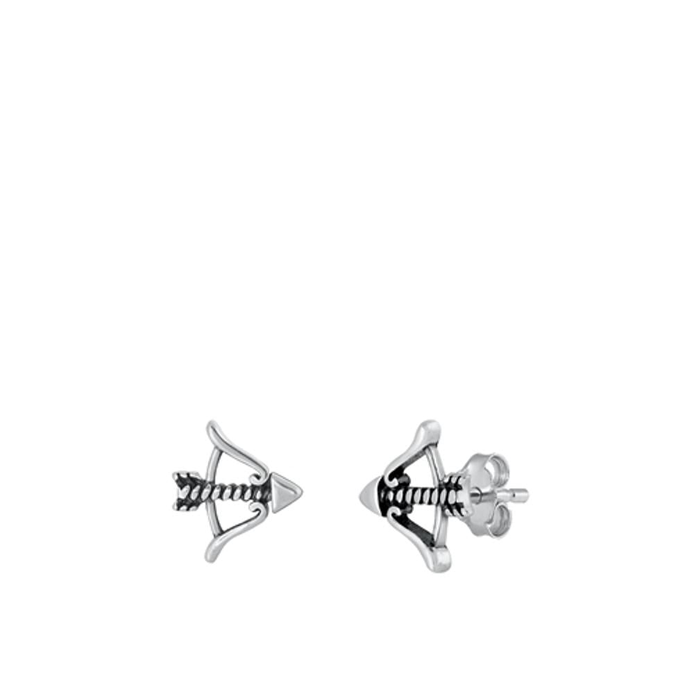 Sterling Silver High Polished Oxidized Bow & Arrow Earrings 925 New