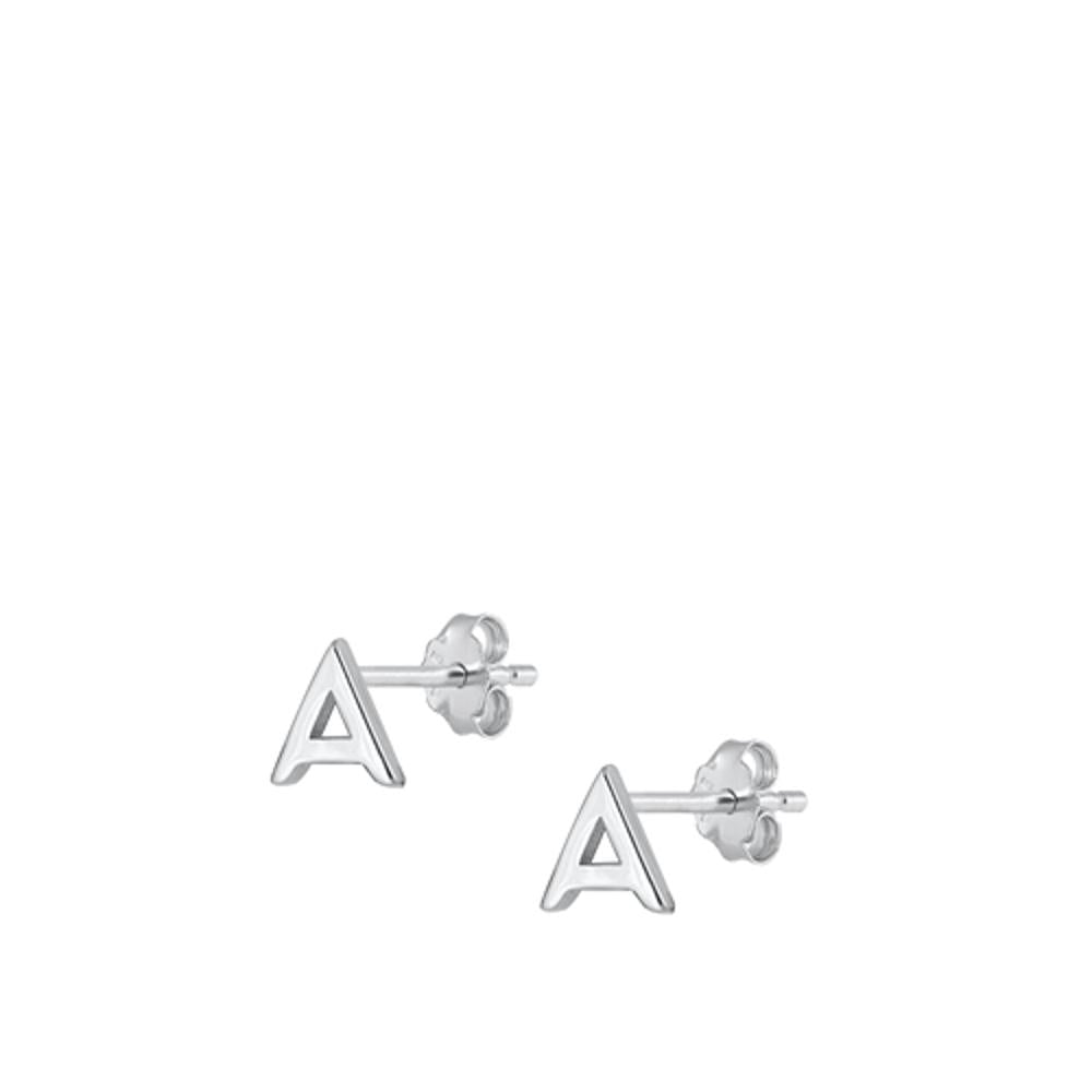 Sterling Silver High Polished Initial A Stud Letter Earrings 925 New