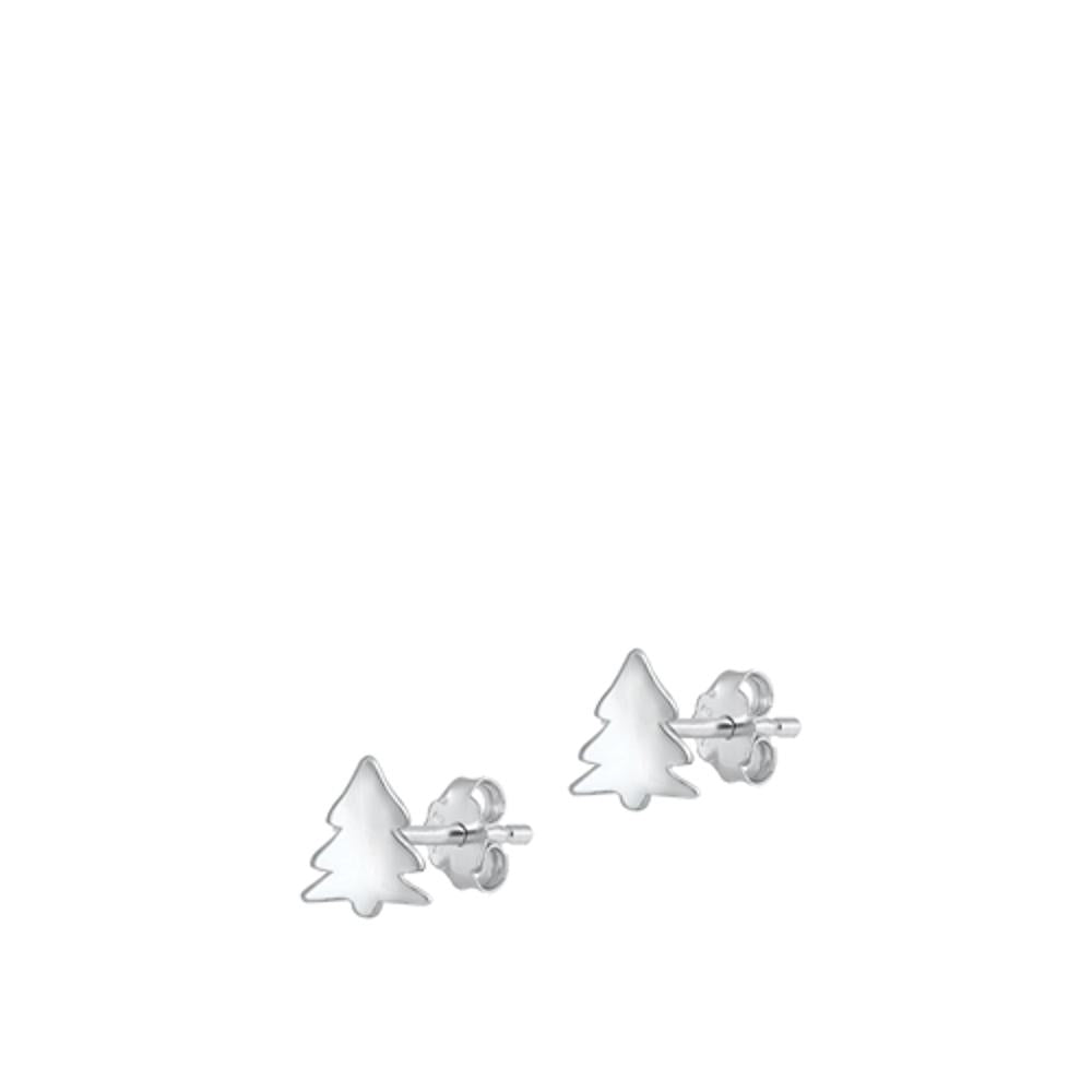 Sterling Silver High Polished Christmas Pine Tree Earrings .925 New