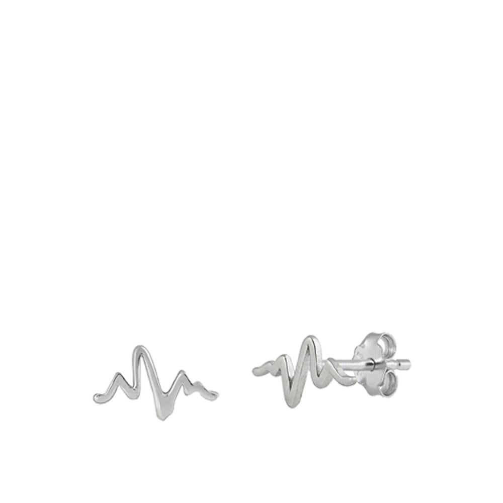 Sterling Silver High Polished EKG Heart Medical Stud Lifeline Earrings .925 New