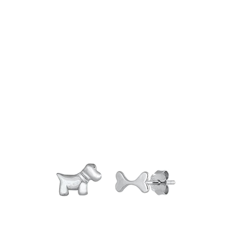 Sterling Silver High Polished Dog & Bone Stud Chic Fashion Earrings .925 New