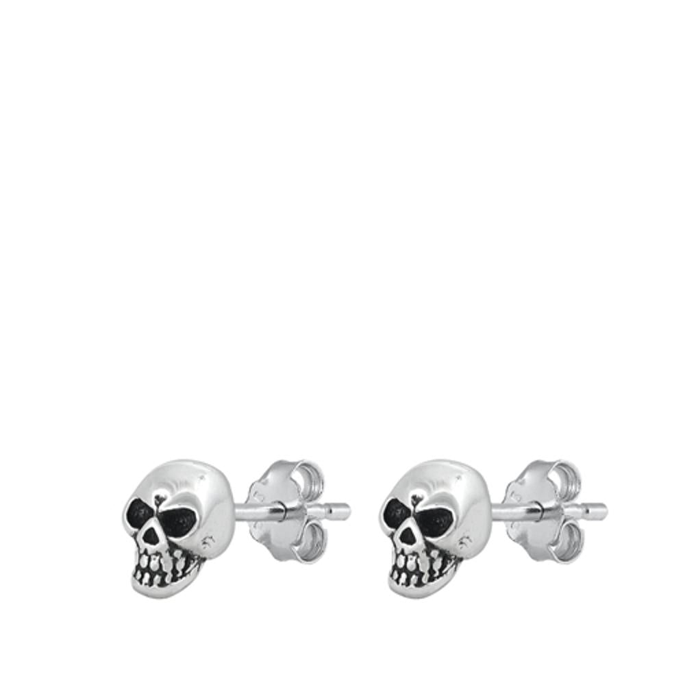 Sterling Silver Skull Stud Earrings Unique Punk Rock Gothic Skull Head 925 New
