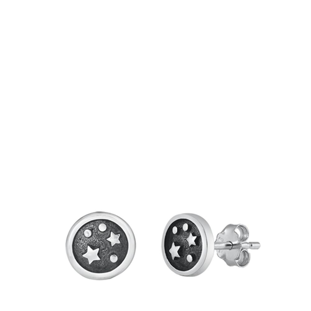 Sterling Silver Galaxy Stud Earrings Oxidized Mini Stars Round 925 New