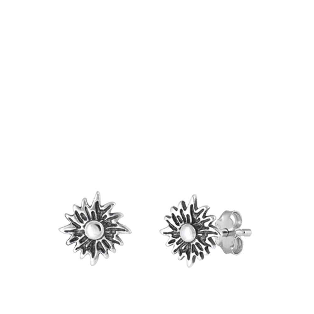 Sterling Silver Cute Oxidized Sun Flower High Polished Earrings .925 New