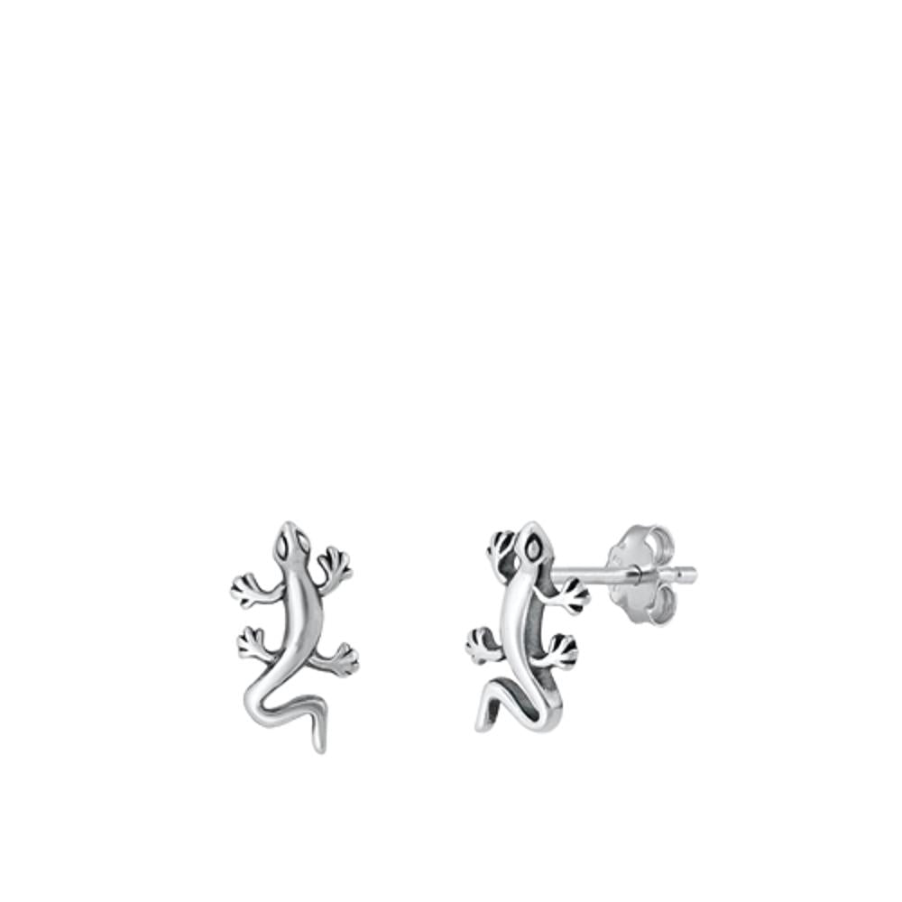 Oxidized Sterling Silver High Polished Lizard Gecko Earrings 925 New