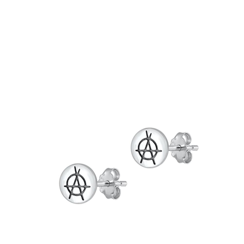 Sterling Silver Fashion Anarchy High Polished Oxidized Stud Earrings .925 New