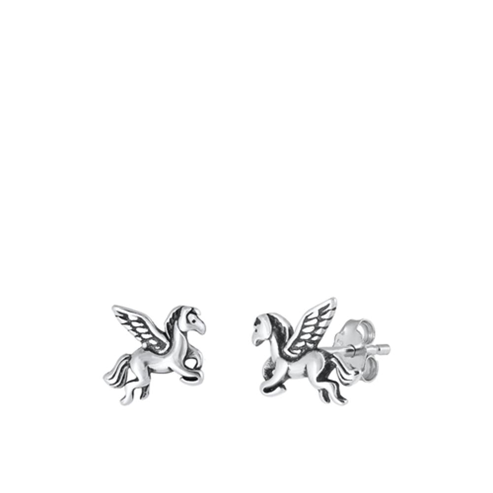 Sterling Silver Classic Cute Flying Pegasus Oxidized High Polished Earrings 925