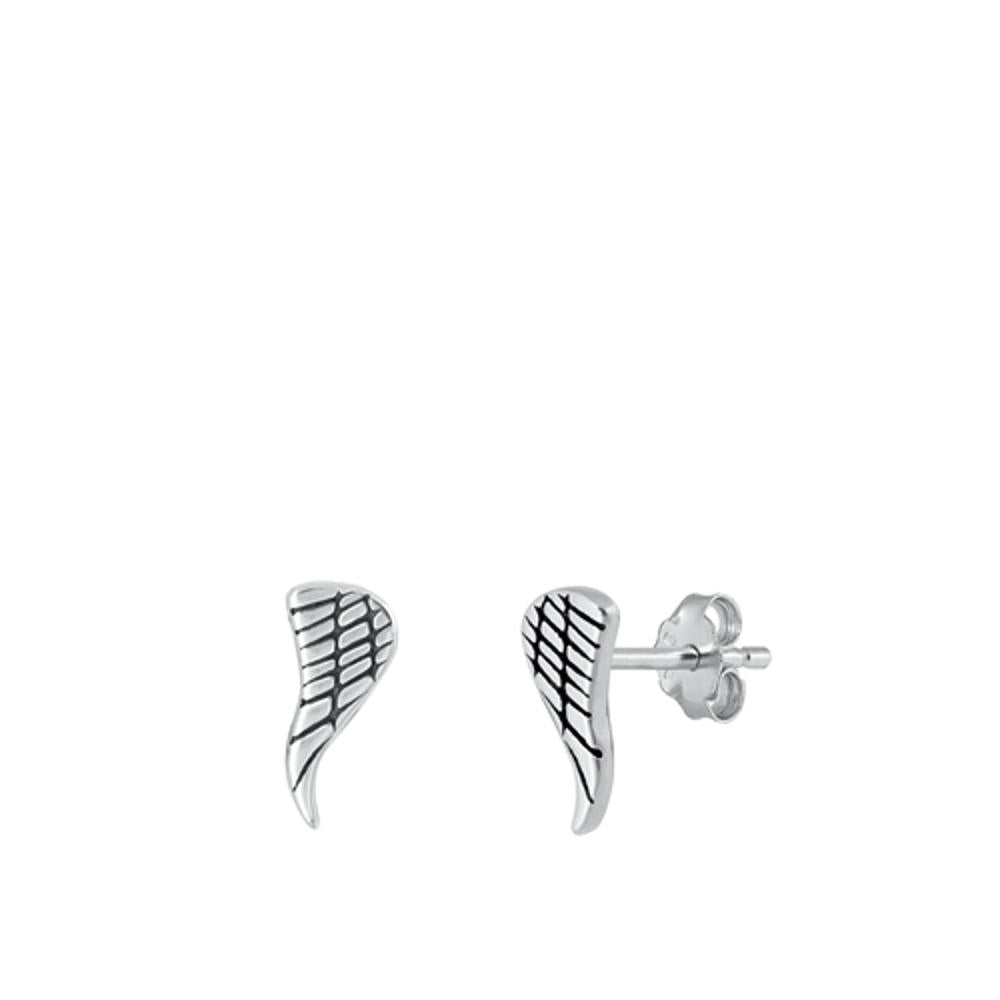 Oxidized Sterling Silver High Polished Angel Wings Stud Earrings 925 New
