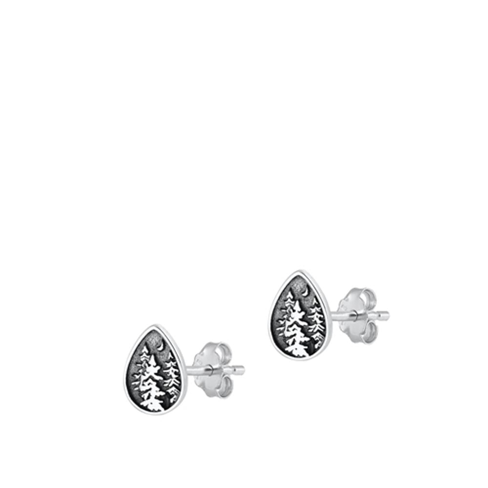 Sterling Silver Fashion Oxidized Night Sky Forest Tree Earrings 925 New