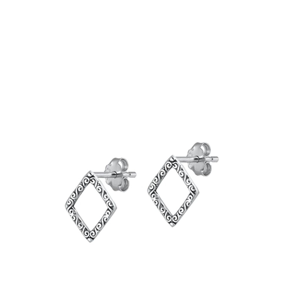 Sterling Silver Beautiful Oxidized Celtic Design Diamond-Shaped Earrings 925 New