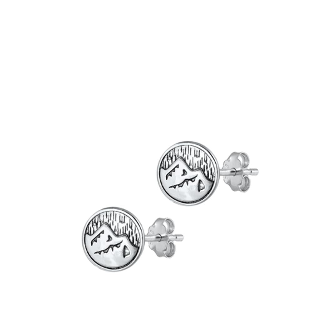 Sterling Silver Fashion Mountian Stud High Polished Chic Earrings .925 New