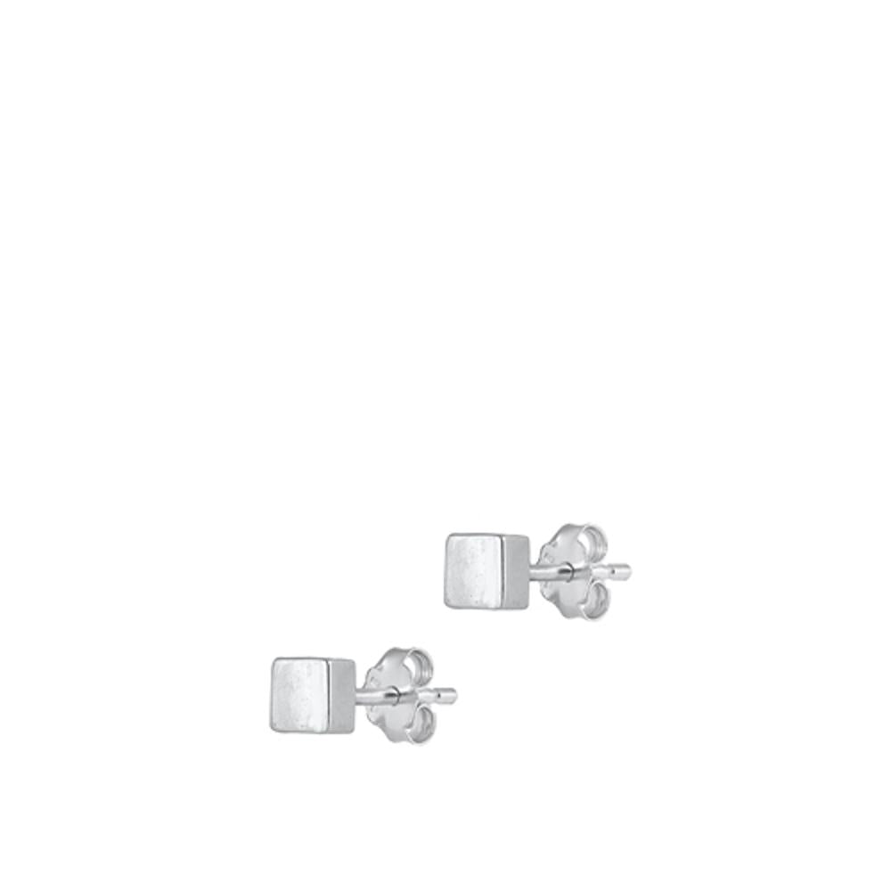 Sterling Silver Unique Square Cube High Polished Minimalist Stud Earrings .925