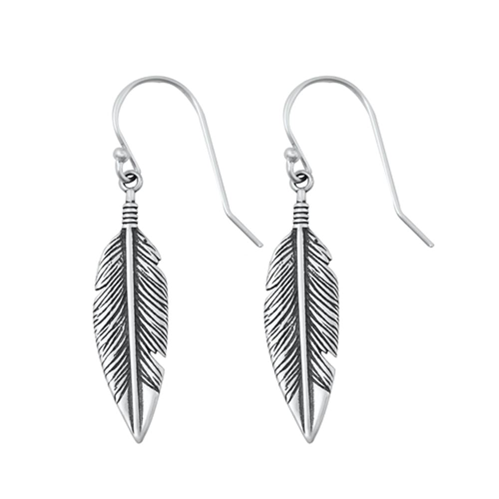 Sterling Silver Classic Feather Hook High Polished Oxidized Earrings .925 New