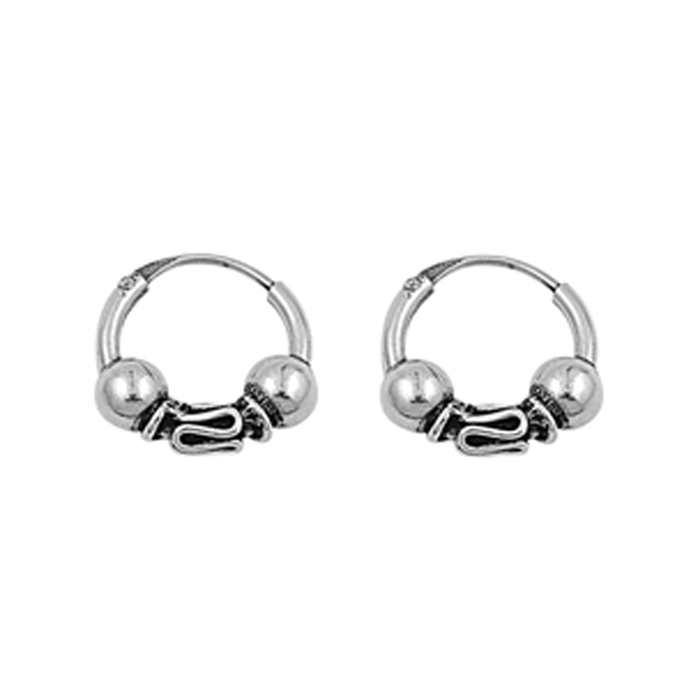 Sterling Silver Ball Bead Hoop Weave Wrap Boho Statement Earrings 925 New