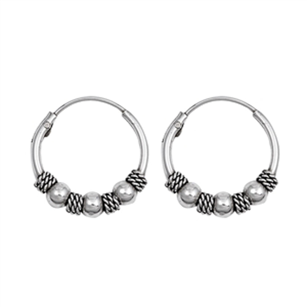 Sterling Silver Bali Style Hoop Boho Ornate Statement Earrings 925 New