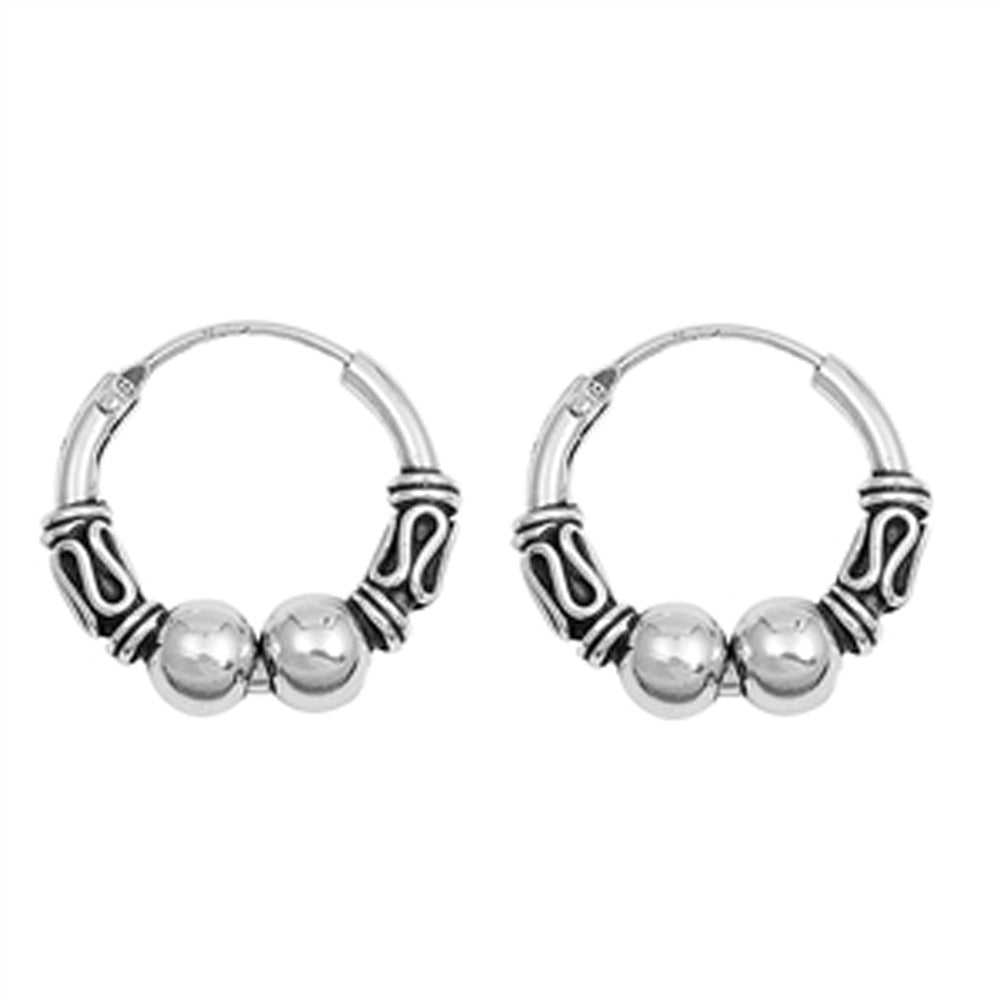 Sterling Silver Bali Style Hoop Statement Boho Bead Ball Earrings 925 New
