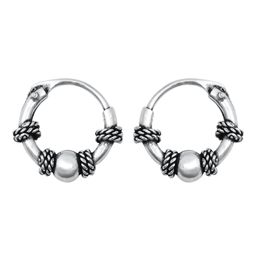 Sterling Silver Rope Twist Hoop Bali Style Boho Earrings 925 New