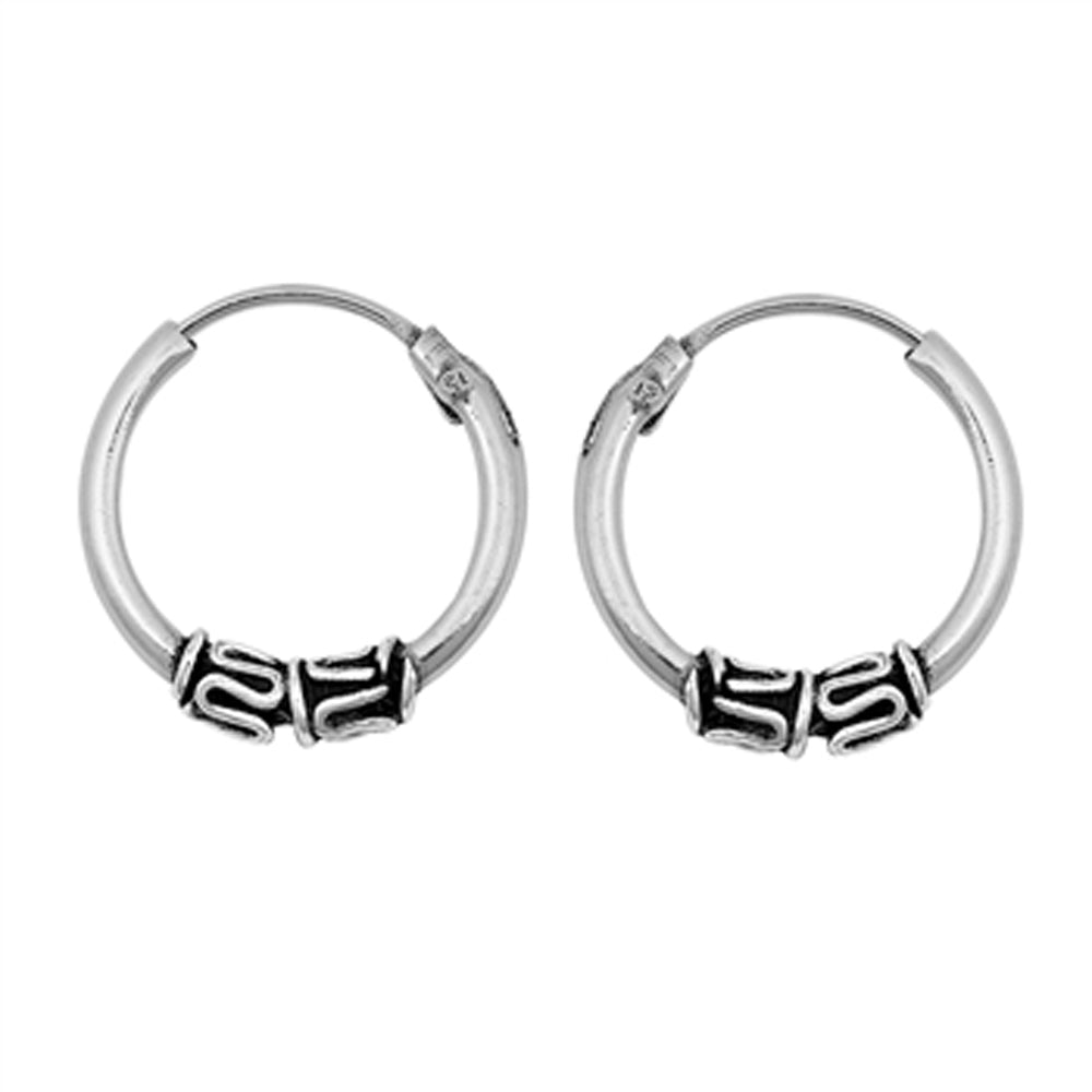 Sterling Silver Simple Hoop Boho Style Bali Unique Earrings 925 New