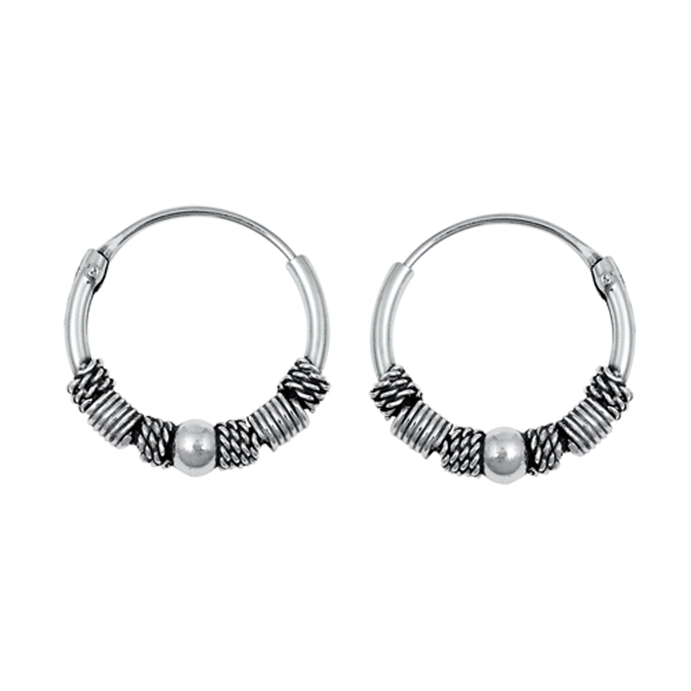 Sterling Silver Bali Style Hoop Wavy Rope Boho Earrings 925 New