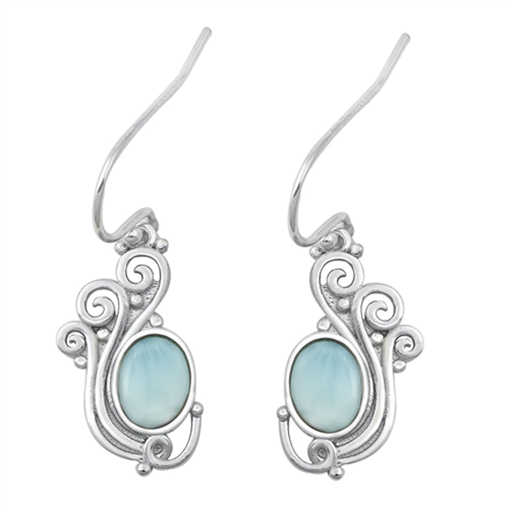 Sterling Silver Filigree Swirl Vintage Style Ornate Oval Earrings Larimar 925