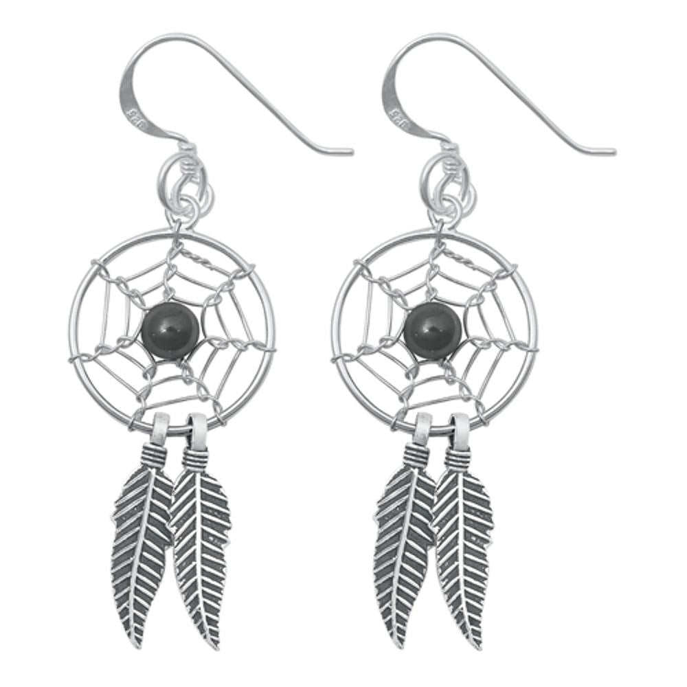 Sterling Silver Dreamcatcher Web Hanging Feather Hook Earrings 925 New 925 New