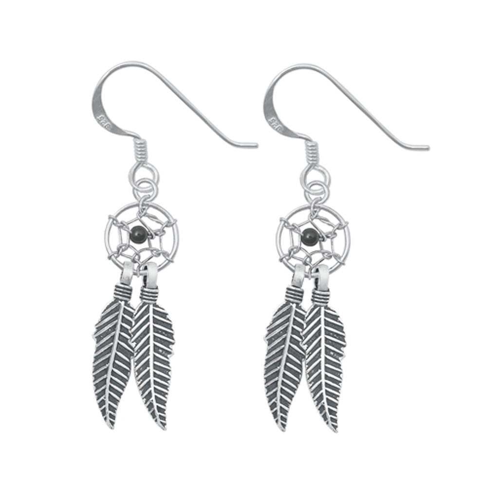 Sterling Silver Unique Native American Feather Dreamcatcher Earrings 925 New