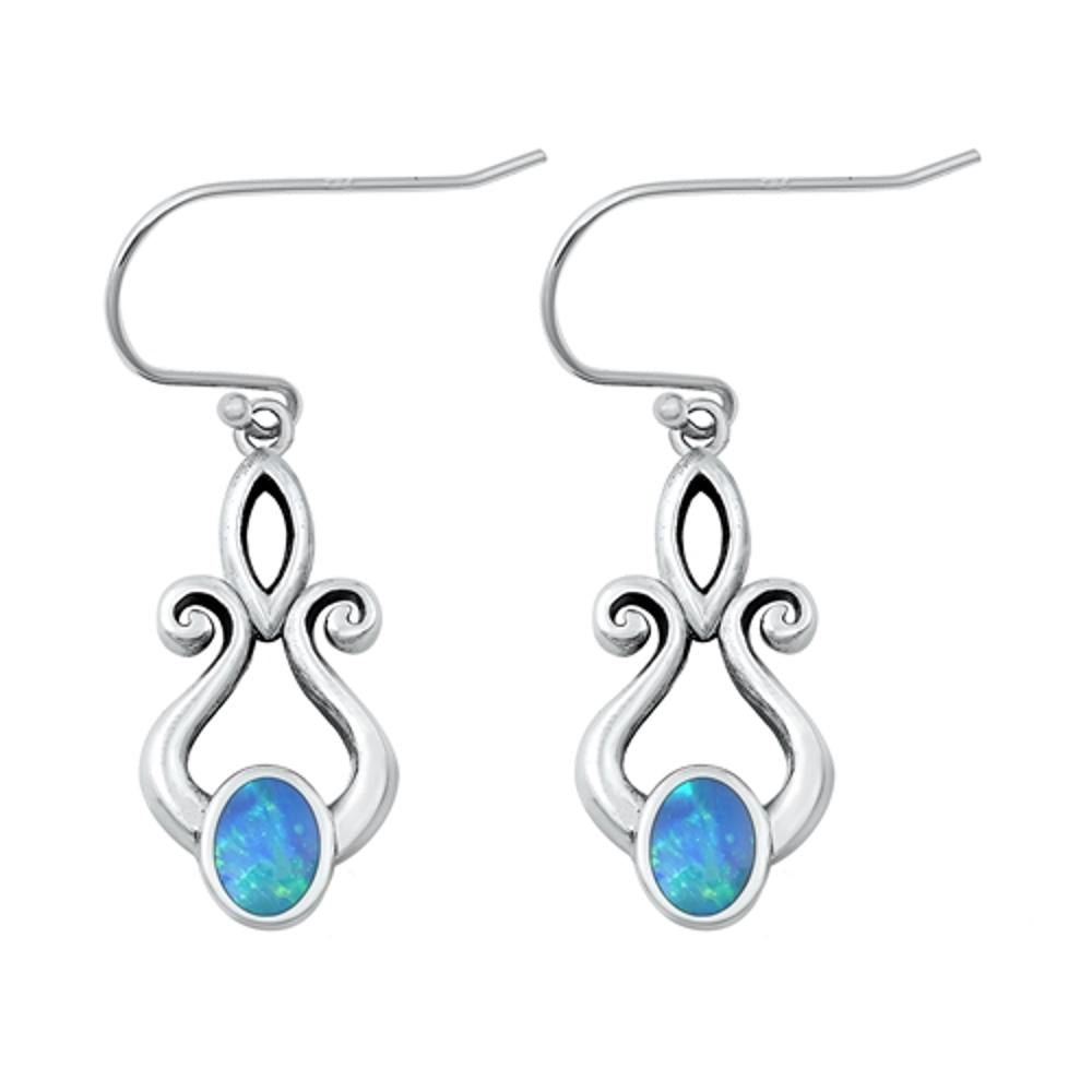 Sterling Silver Cute Blue Synthetic Opal Celtic Hook Fashion Earrings .925 New