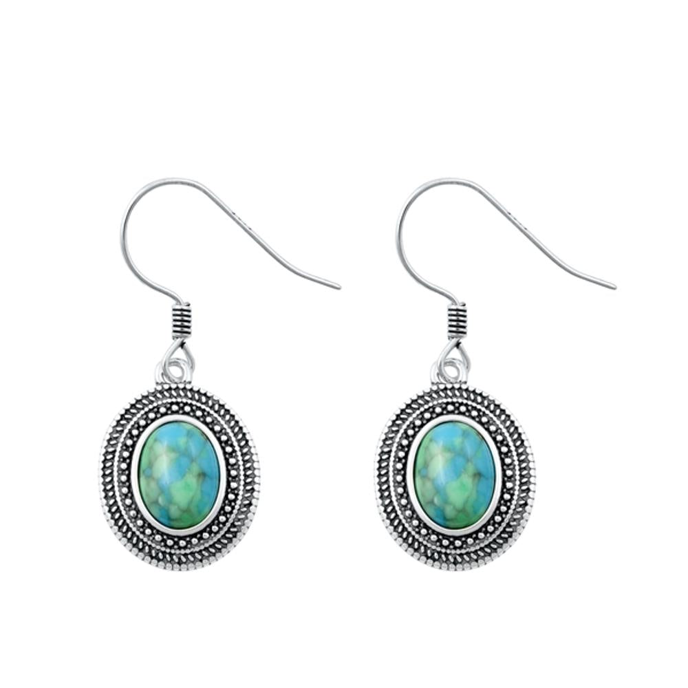 Sterling Silver Classic Turquoise Bali Hook Oxidized Polished Earrings .925 New